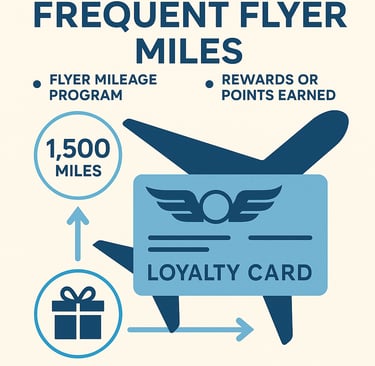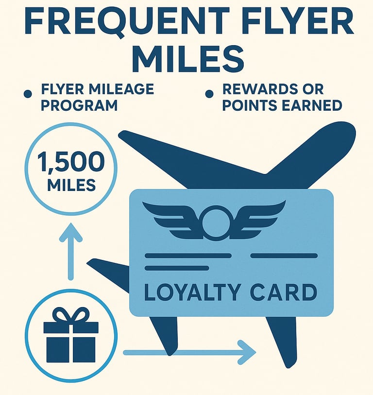 Frequent flyer miles are reward points given by airlines to passengers based on the distance flown, the ticket price, or even spending on partner services like hotels, credit cards, and car rentals. They can later be redeemed for free flights, upgrades, or other travel perks.
